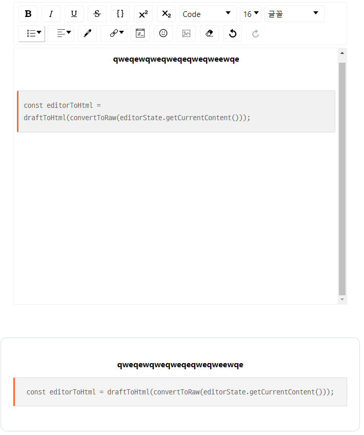 div태그 안에editorState상태 값을 HTML태그로 변환하여 넣을 수 있습니다.