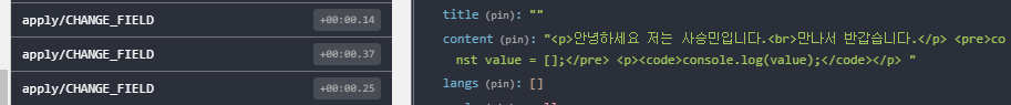 import React, { useState, useEffect, useRef } from 'react'; // 생략.. const TestEditorForm = () => { // 생략.. const rendered = useRef(false); useEffect(() => { if (rendered.current) return; rendered.current = true; const blocksFromHtml = htmlToDraft(htmlToEditor); if (blocksFromHtml) { const { contentBlocks, entityMap } = blocksFromHtml; const contentState = ContentState.createFromBlockArray(contentBlocks, entityMap); const editorState = EditorState.createWithContent(contentState); setEditorState(editorState); } },[htmlToEditor]); return ( // 생략.. ); }; export default TestEditorForm;🌈 Redux를 사용하여 상태 관리하기