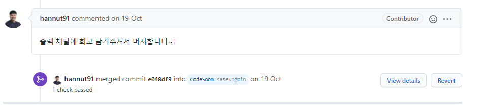 ๋งค์ฃผ ๊ณผ์ ๋ฅผ ๋๋ด๊ธฐ ์ํด์๋ PR์ Merge๋ฅผ ํด์ผ ํ๋ค.
