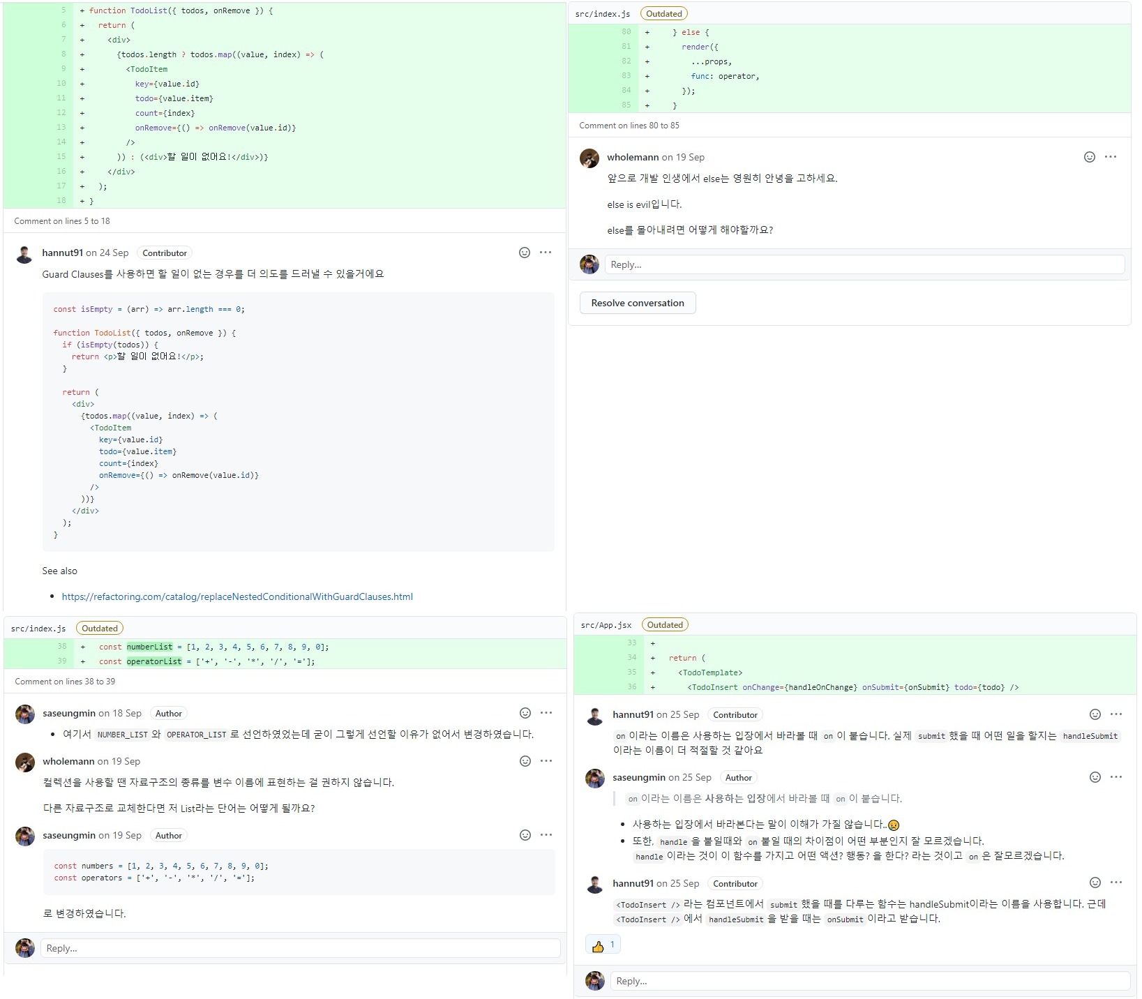 ๊ณผ์ ๋ฅผ ์ํํ๊ณ ๋ฆฌ๋ทฐ๋ฅผ ๋ฐ๊ณ ๋ฐ์ ๋ฆฌ๋ทฐ์ ๋ํด์ ์์ ํ๊ณ ๋ค์ ์ปค๋ฐํ๊ณ ๋ฅผ ๋ฐ๋ณตํ๋ฉฐ ์ฒ์์ ์งฐ๋ ์ฝ๋๋ณด๋ค ํจ์ฌ ๋ ๋ณด๊ธฐ ์ข์์ง ์ฝ๋๋ฅผ ๋ณผ ์ ์์๋ค.