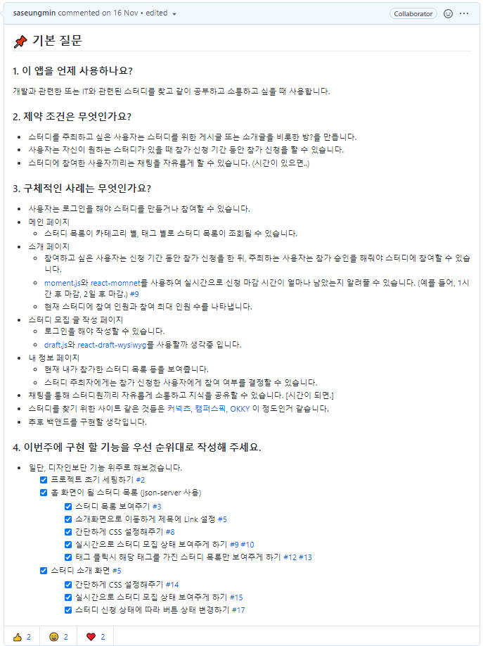 ์ฒซ ๋ฒ์งธ๋ ๋งค์ฃผ ๊ตฌํํ๊ธฐ์ ์์ github ๊ฐ์ธ ํ๋ก์ ํธ repository์ issue์ ๊ณํ์ ์์ฑํด์ผ ํ๋ค.