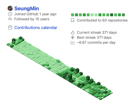 개발자로서 그 꾸준함을 나타낼 수 있는 지표는 Github의 commit 상태뿐이라고 생각이 든다.