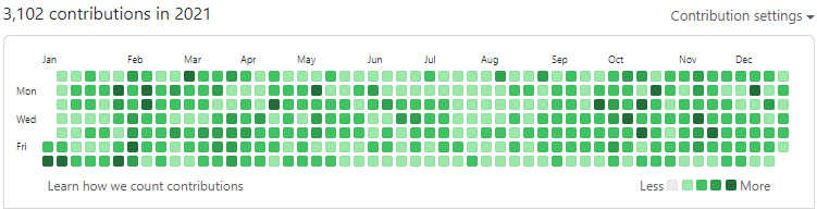 작년에 세웠던 계획 중에 이게 제일 어렵다고 생각했었는데 다행히도 daily commit은 하루도 빼먹지 않고 유지 중이다. 처음 프론트엔드 공부를 시작했을 때 최소 2년은 하자고 했던 게 벌써 오늘로써 616일째이다.