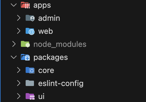 admin과 web에서 사용하는 공통 코드들은 packages 밑으로 이동시켜 core(api, util..), eslint, ui(component, hook)을 공통으로 사용하도록 구성하였다.
