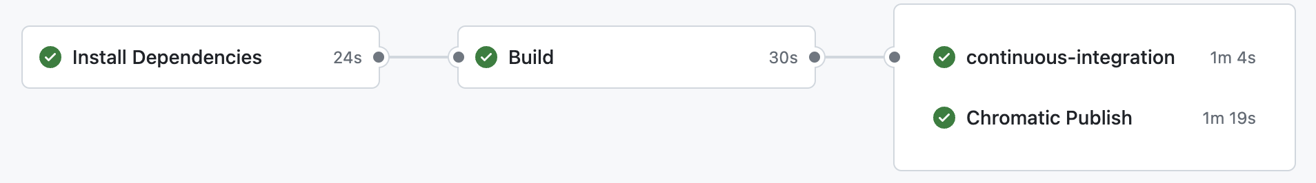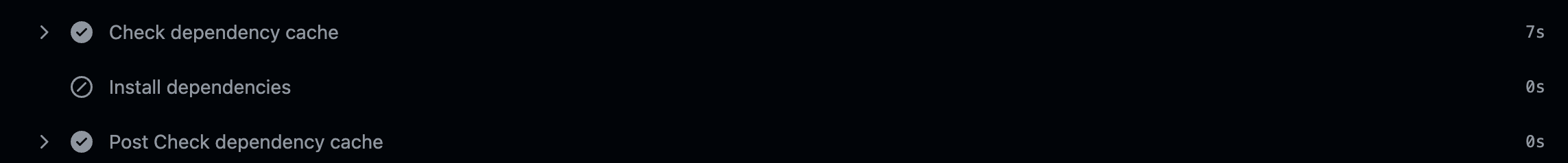 실제로 캐시가 적용되어 있으면 아래와 같이 install, package build를 건너뛰고 바로 lint와 test를 검증한다.