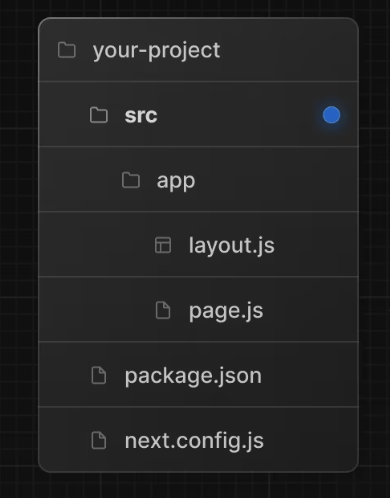 The following section lists a very high-level overview of common strategies. The simplest takeaway is to choose a strategy that works for you and your team and be consistent across the project.src의 역할을 하는 app을 root로 사용해서 내부 안에 모든 코드가 다 들어가는 방법도 있었는데, app을 router방식으로만 사용하는 방법을 선택했다.