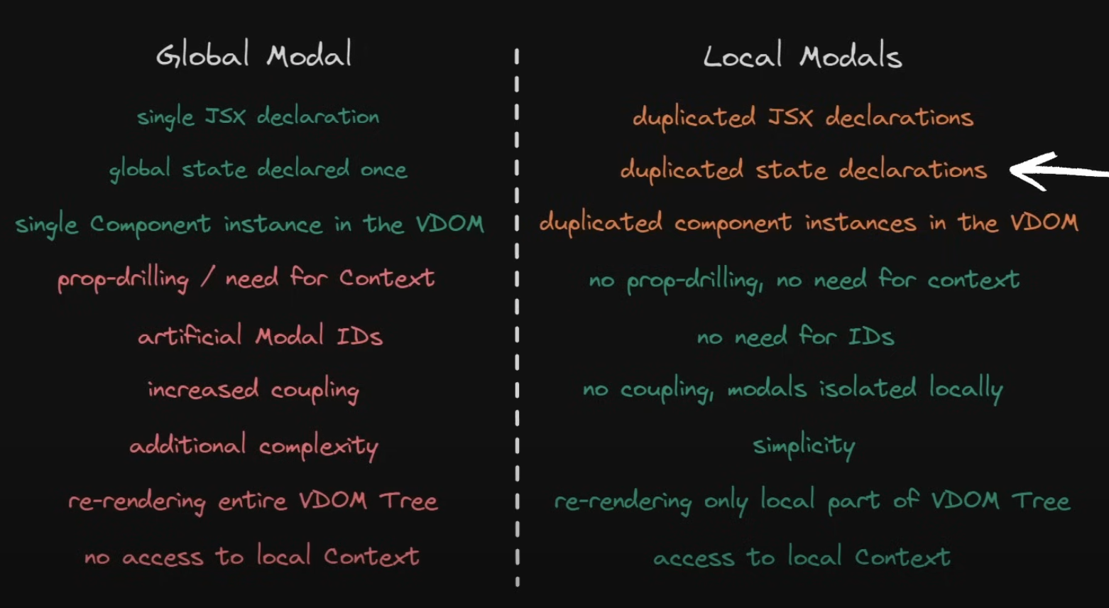 결론만 말하자면 대부분의 경우에서는 전역적으로 관리하는 것보다 local context로 관리하는 게 더 많은 이점을 누릴 수 있다는 내용이었고 참고하여 modal을 지역적으로 관리하도록 구성하였다.