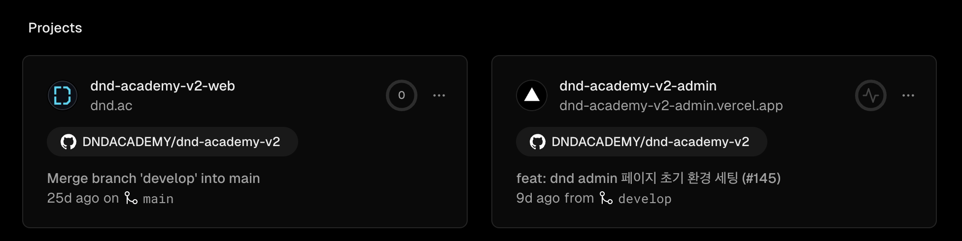 두 달간 vercel을 사용해 봤는데 무료로 계속 유지되고 있어서 비용적인 부분도 확실히 해소가 되었다.DND에서 참여자로 시작해 운영진으로 활동하면서 DND에 대한 동아리의 애정이 생기게 되었고, 홈페이지를 마이그레이션 한 이유도 이 애정 중 하나가 아닐까 싶다.
