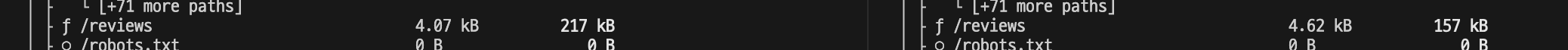 그리고 이렇게 나누어 template을 관리하면 next.js에서 template와 layout 기준으로 code splitting 효과를 얻을 수 있어서 초기 로딩 시간(First Load JS)을 줄일 수 있다.
